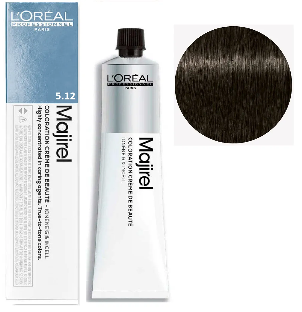 Відгуки 5/12 Світло-коричневий попелясто-фіолетовий Фарба для волосся стійка, 60 мл Majirel L`Oreal Professionnel (оновлений формат)